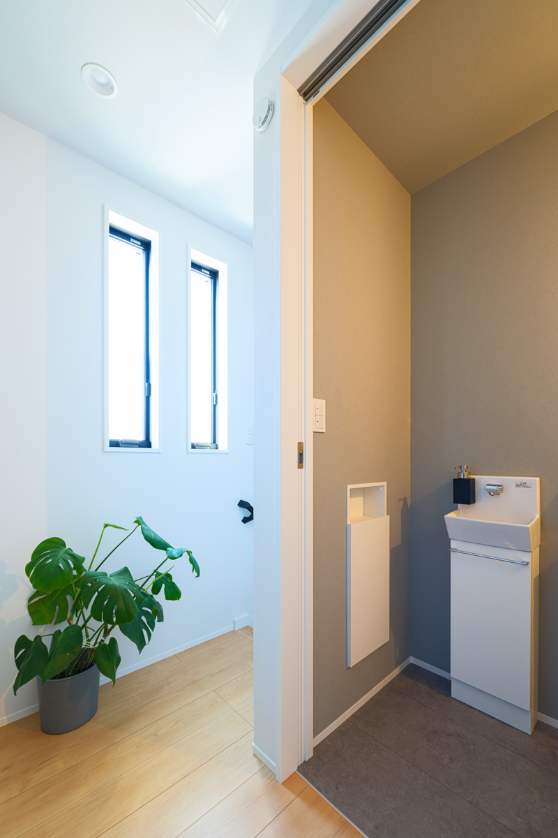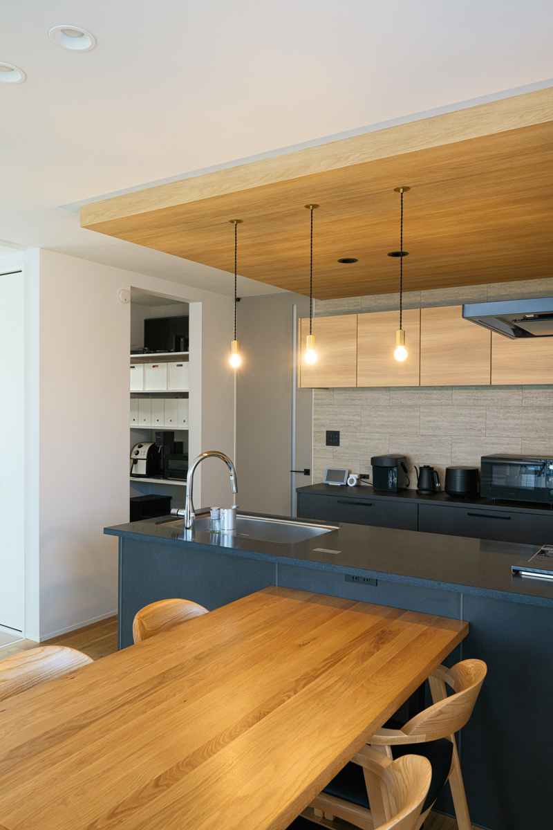 打ち合わせのたびに「こうしたい」という案を持ち込み、パズルを組み合わせるようにお気に入りの住まいを仕上げていったS様ご夫妻。1階はキッチンを住まいの中心にレイアウトした効率的な動線設計&収納計画で、暮らしやすさを考え抜いたワンフロア構成。穏やかな空気感に包まれた空間を言葉にすれば、まさに”シンプル・イズ・ベスト”。数値だけでは言い表せない開放感に満たされています。