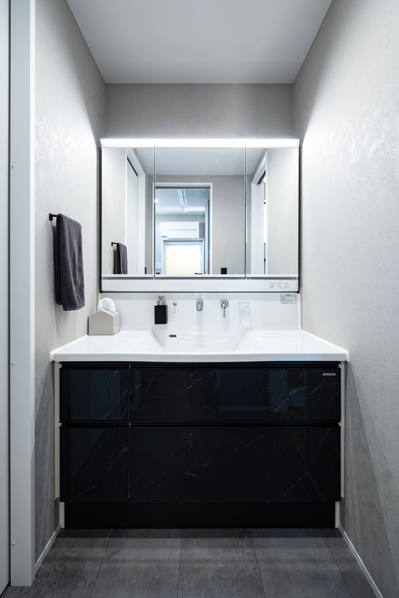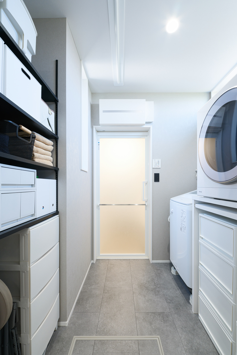 基本的に家に持ち込むモノは必要最低限にして、見える場所に置かないように暮らしたいと考えています。使ったモノは出したままにしておきたくないので、収納をなるべく多く、収納家具を置かなくて済むように動線に沿って収納を配置してもらいました。