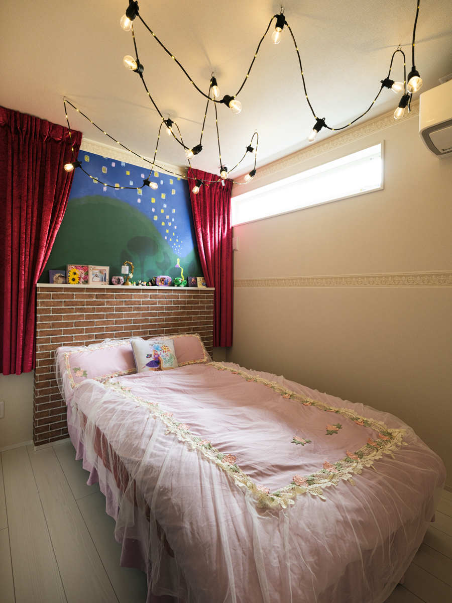 大好きなアミューズメントパークがあって、そこはまさにみんなにとっての夢の国。私の中ではその世界観を再現したこの家に住むことが、小さい頃からの決定事項でした。いまでもお出かけして入ったお店で使っている照明とか好きなテイストの装飾を見つけたりすると、すごく気になります。